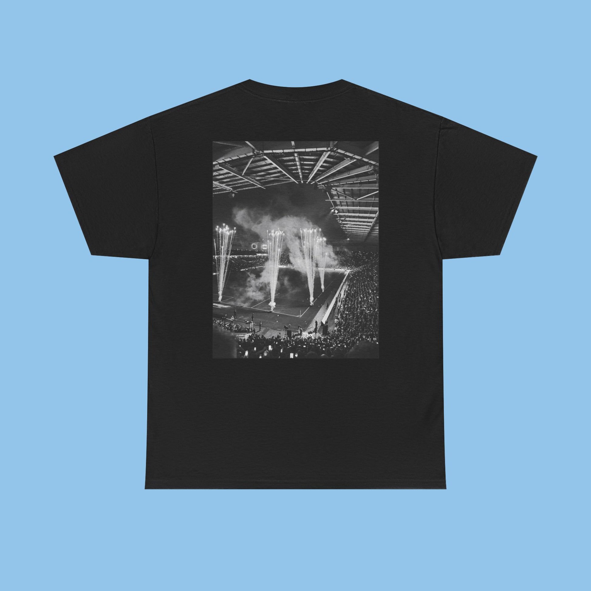 A soft, sturdy cotton tee that feels lived-in from the first wear. This classic crew shirt carries a minimalist front logo and a moody, high-contrast concert photo printed on the back — a wearable snapshot of a night charged with lights, fog, and the roar of the crowd. The relaxed fit and clean neckline make it easy to layer under a jacket or wear solo, while the crisp prints hold their detail wash after wash. Slide into it when you want to carry a memory with you: heading to a low-key show, meeting friends for an evening out, or wearing a piece that quietly signals your taste in music and good design.